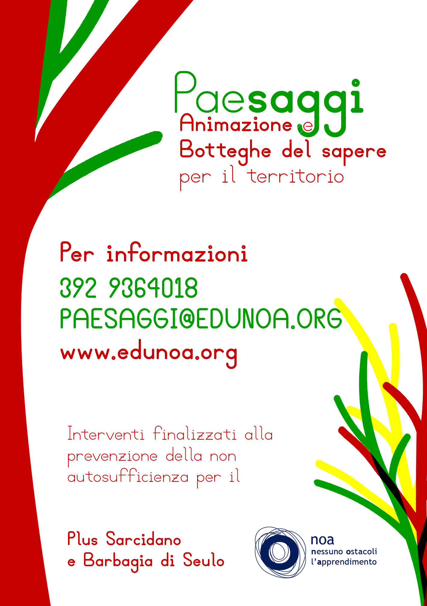 NOA, nessuno ostacoli l’apprendimento organizzeranno nell’arco dell’anno attività di socializzazione e aggregazione gratuite, aperte ai cittadini con più di 50 anni d’età. In allegato il modulo di iscrizione. La presentazione del modulo di pre adesione è gratuita e non vincolante, ma importante per una migliore programmazione delle attività. I giorni, gli orari e la sede delle attività verranno comunicate tramite locandine e avvisi affissi nella bacheca comunale e trasmessi tramite le reti sociali e i canali istituzionali e informali disponibili.